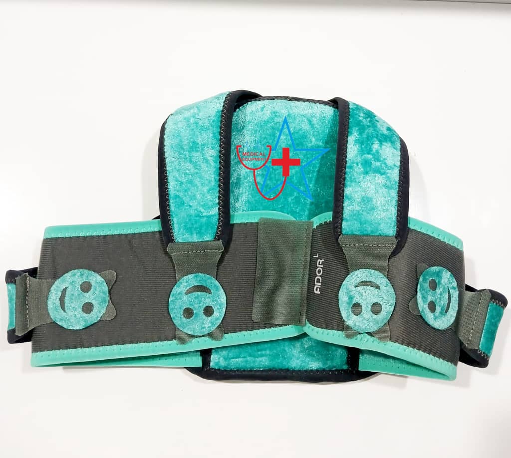 قوز بند آتل دار کودک آدور اصلاح کننده قامت ویژه کودکان با استفاده از پارچه ای نرم ،انعطاف پذیر و قابل تنفس که رطوبت را جذب می کند ،طراحی شده است ،تا طی کل روز